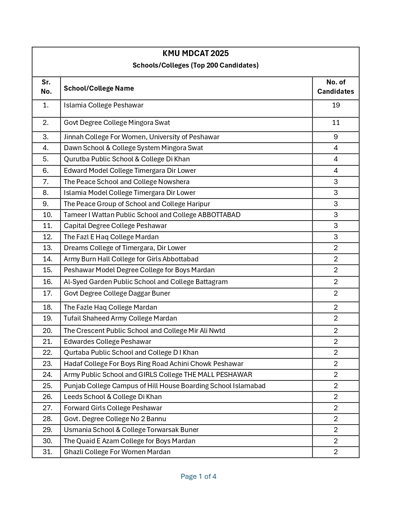 Islamia College Peshawar extends heartfelt congratulations to its students for their outstanding performance in the KMU MDCAT 2025