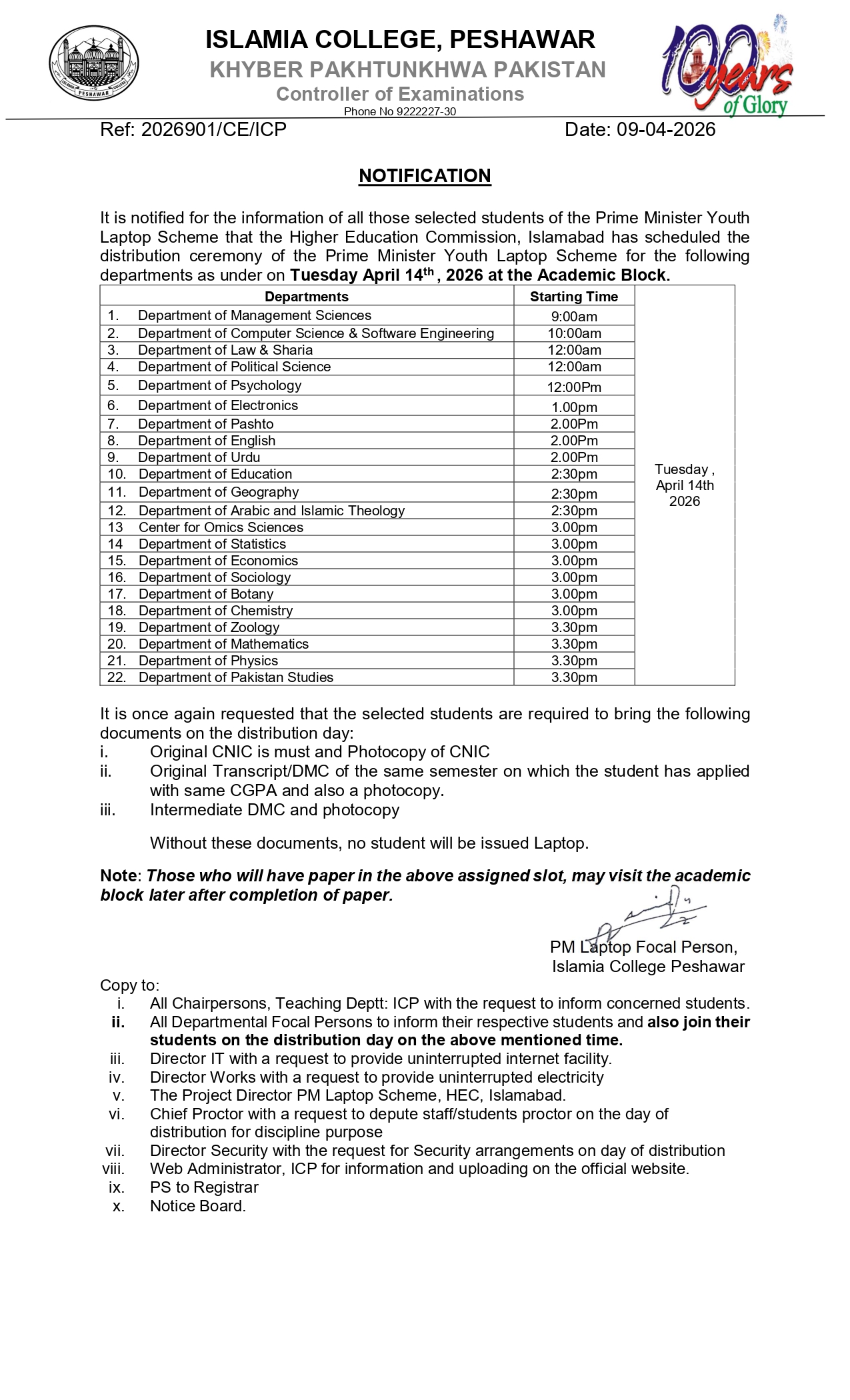 Notification regarding PM laptop distribution