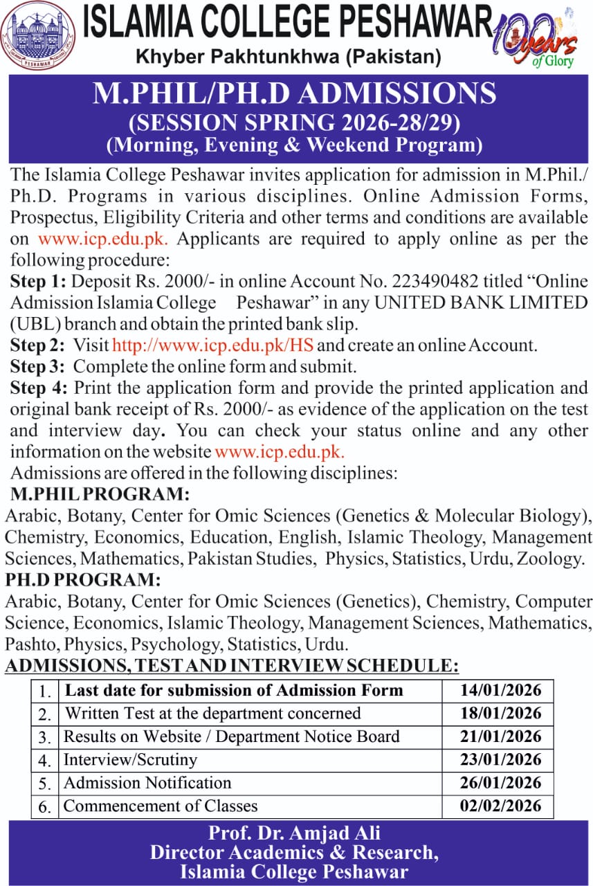 Applications are invited from deserving students from district Peshawar by District Zakat Committee Peshawar