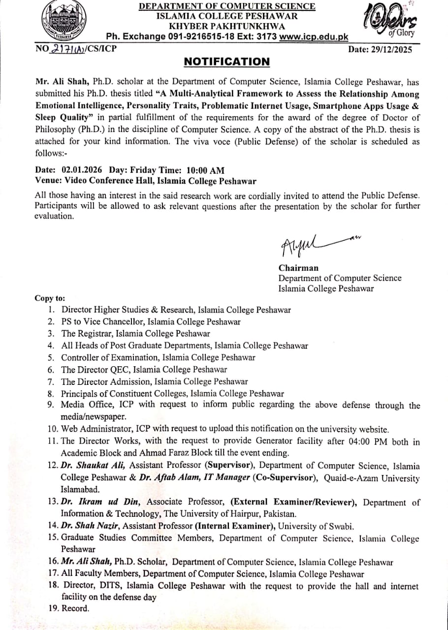 Notification regarding Pashto PhD admission interview
