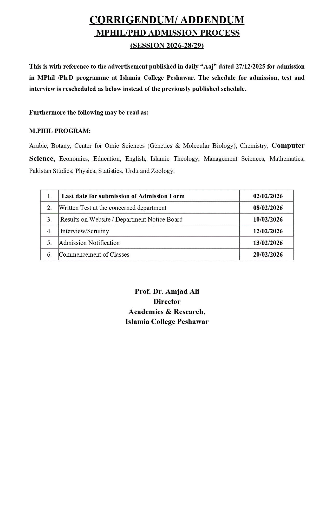 Notification regarding MPhil / PhD admission in Islamic Theology interview