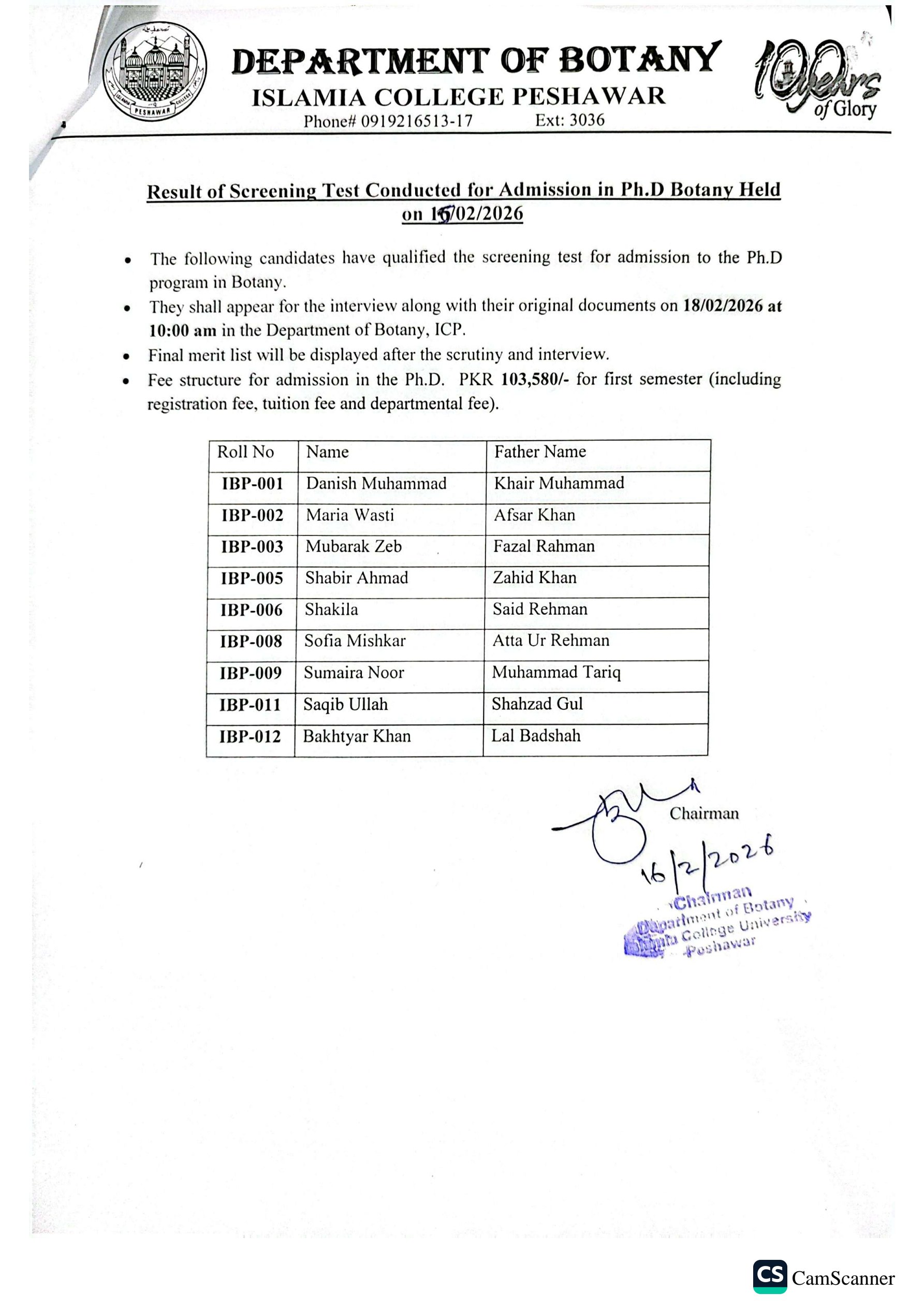 List of provisionally admitted students in MPhil / PhD Islamic Theology